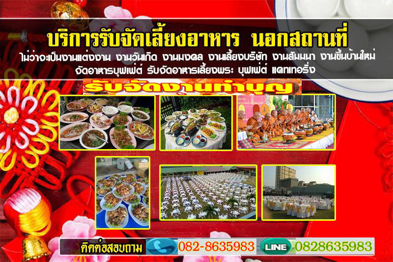 งานแต่งงาน งานเลี้ยงสังสรรค์ต่างๆ จัดเลี้ยง ทำบุญเลี้ยงพระ งานทำบุญบริษัท เปิดกิจการ หรืองานฌาปนกิจออกงาน นอกสถานที่ ราคาถูก